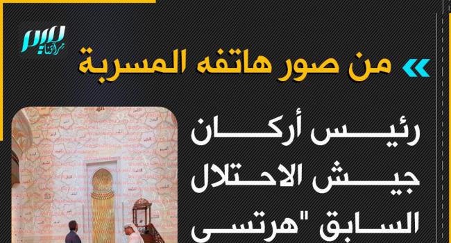 رئيس أركان جيش الاحتلال السابق "هرتسي هاليفي" في جامع الشيخ زايد الكبير بالإمارات، كما أظهرت صور هاتفه التي سربتها مجموعة حنظلة هاكرز.