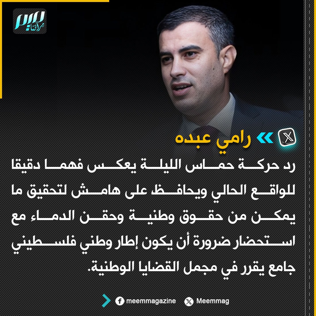 رامي عبده: رد حركة حماس الليلة يعكس فهما دقيقا للواقع الحالي