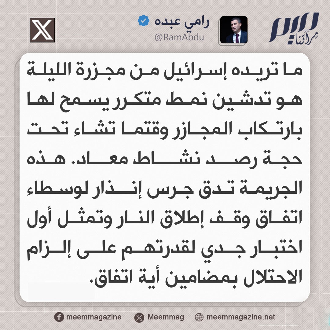 رامي عبده: ما تريده إسرائيل من مجزرة الليلة هو تدشين نمط متكرر يسمح لها بارتكاب المجازر
