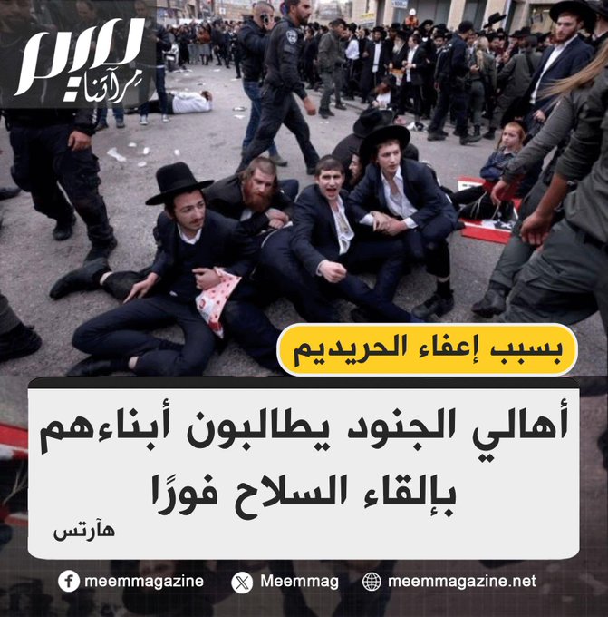 ردًا على تمديد إعفاء الحريديم من الخدمة العسكرية، المئات من أهالي الجنود الإسرائيليين يبلغون يوآف غالانت وهرتسي هاليفي أنهم يطالبون أبناءهم بإلقاء السلاح فورًا والعودة من غزة.