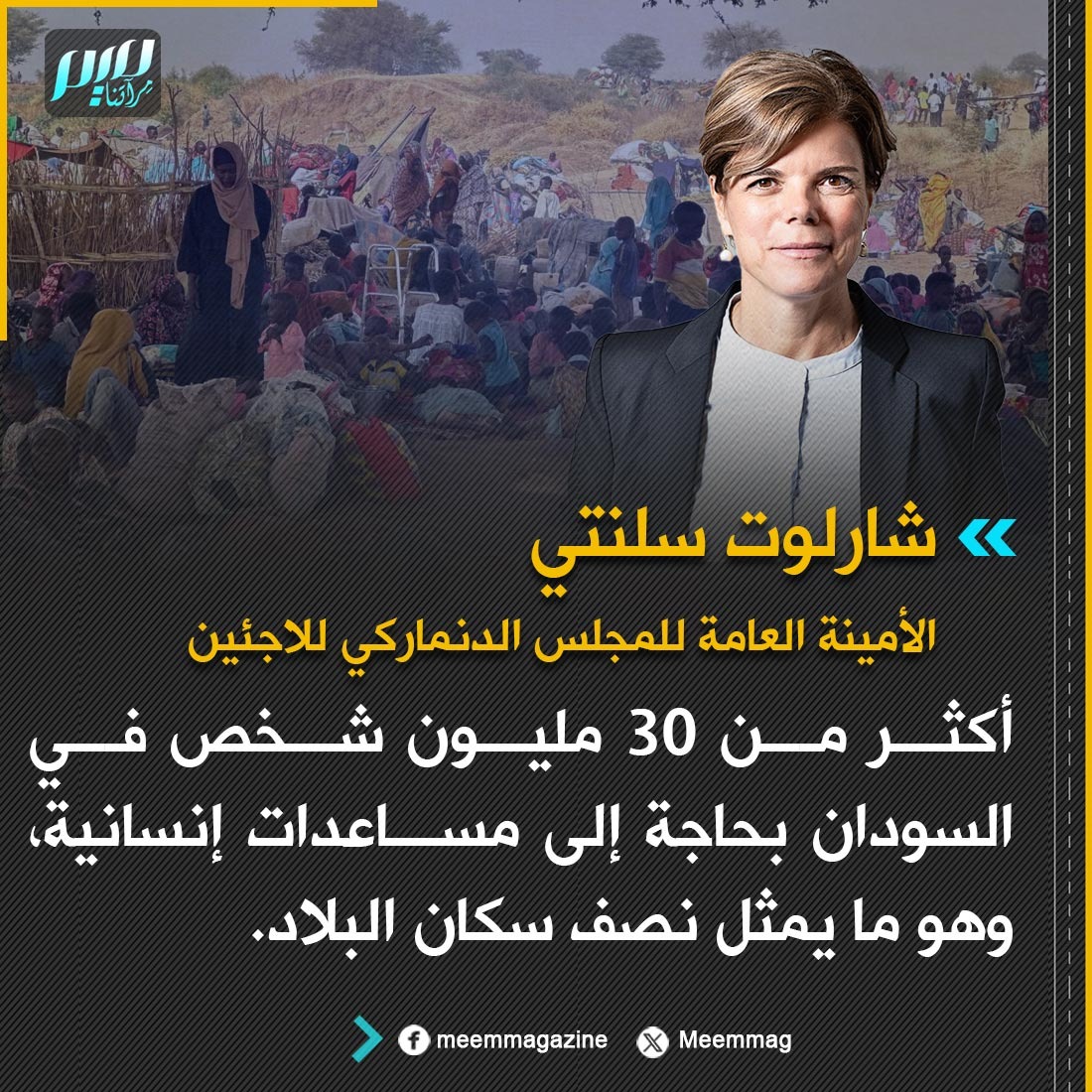 شارلوت سلنتي: أكثر من 30 مليون شخص في السودان بحاجة إلى مساعدات إنسانية، وهو ما يمثل نصف سكان البلاد.