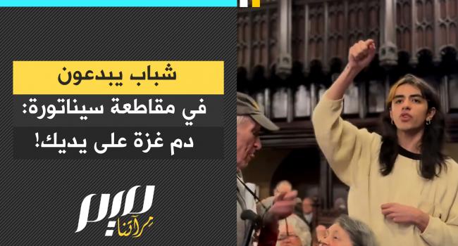 واحدا تلو الآخر، شباب يتداولون بجرأة وبلاغة على مقاطعة السيناتورة كريسين جيليبراند: "تلقيت 366 ألف دولار من جماعات إسرائيل في الانتخابات. لماذا تسمحين أن تشتري من حكومة أجنبية؟ ترسلون مليارات الدولارات من أموال دافعي الضرائب لقتل الأطفال والنساء! تدعين أنك نسوية ونساء #غزة بلا دواء! يداك ملطختان بالدماء!"