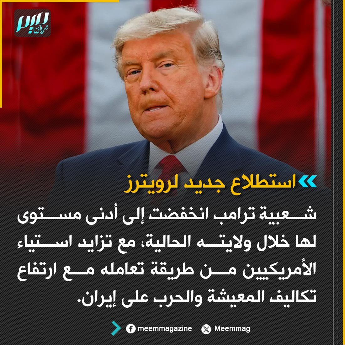 شعبية ترامب انخفضت إلى أدنى مستوى لها خلال ولايته الحالية.