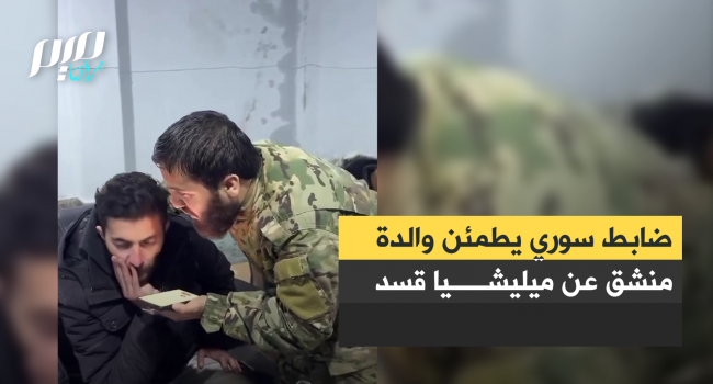 ضابط من الجيش السوري يطمئن والدة عنصر من منطقة "الساحل" منشق عن ميليشيا قوات سوريا الديمقراطية "قسد".