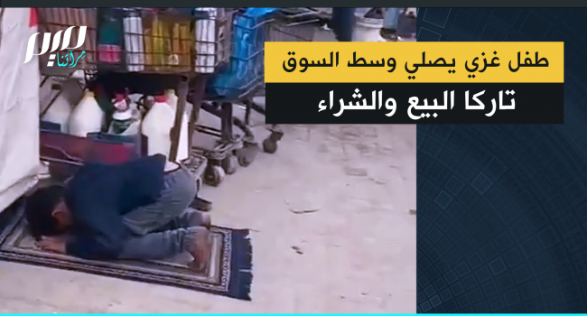 طفل غزي يصلي وسط السوق تاركا البيع والشراء