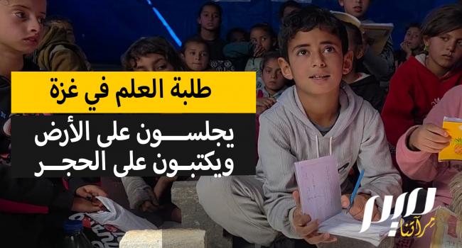 بلا دفاتر ولا مقاعد.. ورغم القصـ.ـف والتهـ.ـجير وقسوة الشتاء، يستمر الطلاب والمدرسون في غزة العملية التعليمية، بإمكانيات شحيحة داخل خيام غير مهيّأة، وذلك ضمن مبادرة تطوعية تستهدف أكثر من 950 طالبا وطالبة في مواصي خانيونس.