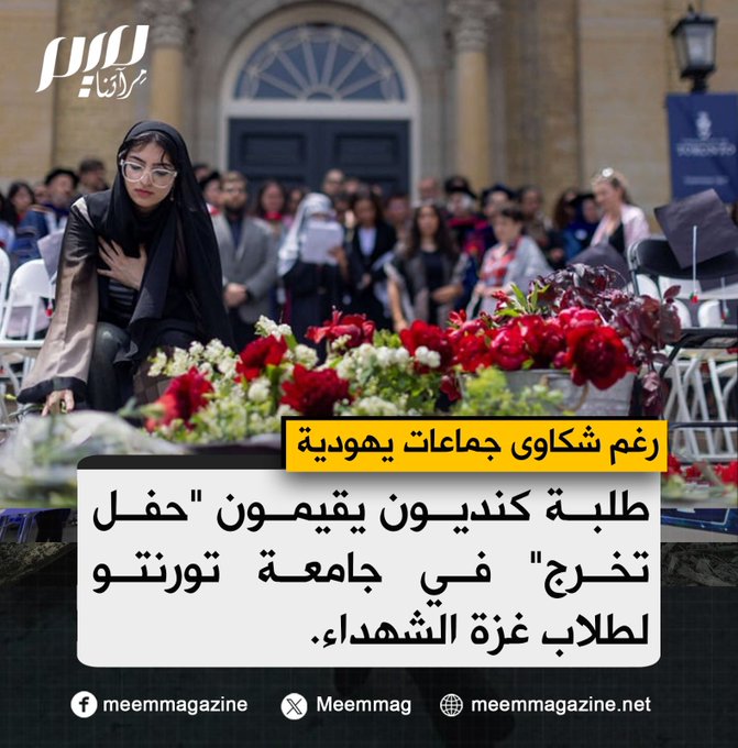 رغم شكاوى جماعات يـهـ.ودية بمعـ.اداة السامـ.ية.. طلبة كنديون يقيمون "حفل تخرج" في جامعة تورنتو لطلاب غزة الذين ارتقوا في الحرب.