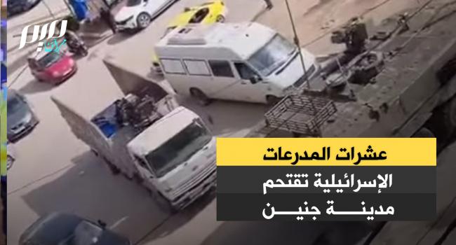 مقطع فيديو يوثق اقتحام عشرات المدرعات الإسرائيلية مدينة جنين شمال الضفة الغربية المحتلة.