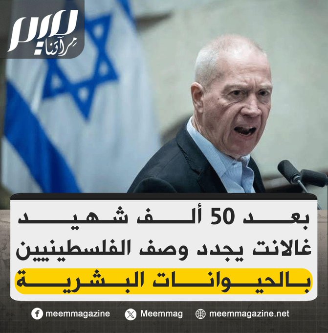 في تحريض علني آخر على الإبـ.ادة، جدد غالانت وصف سكان غزة بالحيوانات البشرية، بعدما قتل 50 ألفًا منهم، بينهم أكثر من 10 آلاف ما يزالون عالقين تحت الأنقاض. وهاجم غالانت الفلسطينيين أمام الكنيست، مؤكدًا استمرار عمليات القتل بحقهم، في ثقة مطلقة منه بغياب المساءلة وصمت المجتمع الدولي.