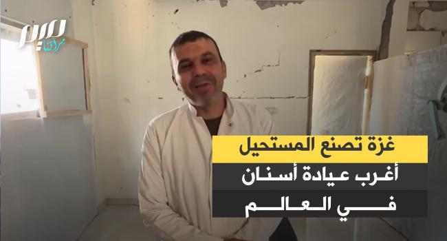 غزة تتحدى الاحتلال.. طبيب أسنان يواصل أداء واجبه الإنساني، ويفتتح عيادته في بناية مدمرة بالقطاع.
