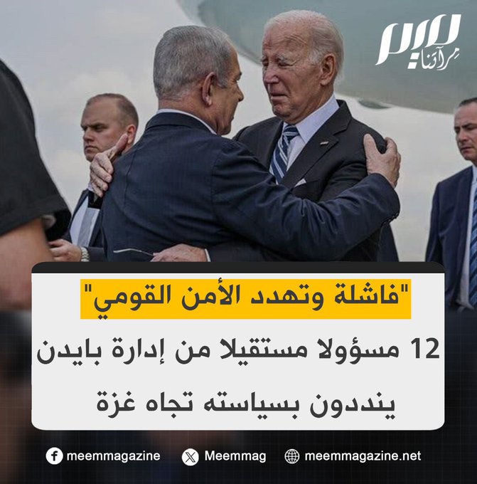 فاشلة، وتهدد الأمن القومي الأمريكي، وتتواطأ في القتل والتجويع".. بيان لـ12 مسؤولًا مستقيلًا من إدارة بايدن بسبب الحرب على غزة، يندد بسياسته الداعمة للجرائم بحق الفلسطينيين.