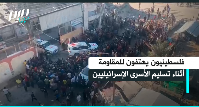 فلسطينيون يهتفون للمقاومة أثناء تسليم الأسرى الإسرائيليين