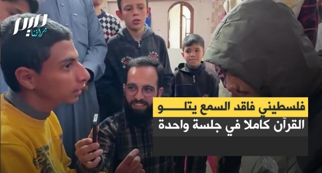 في قصة مليئة بالتحدي والصمود، شاب فلسطيني فقد السمع إثر قصف إسرائيلي يتحدى إعاقته ويتلو القرآن كاملا في جلسة واحدة.
