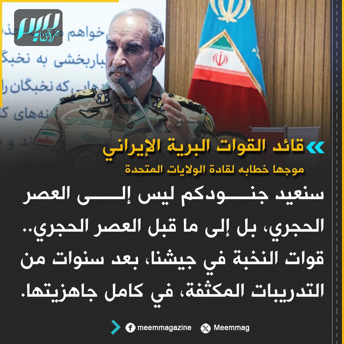 قائد القوات البرية الإيراني يرد على ترامب ووزير دفاعه بيت هيغسيث اللذين قالا إن واشنطن ستعيد طهران إلى العصر الحجري.