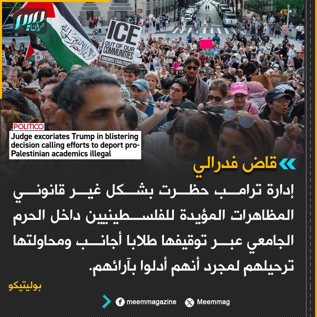 قاضٍ فدرالي: إدارة ترامب حظرت بشكل غير قانوني المظاهرات المؤيدة للفلسطينيين داخل الحرم الجامعي.