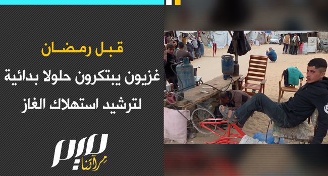 تزامنًا مع اقتراب حلول شهر رمضان، نازحون غزيون في مواصي خانيونس يبتكرون حلولاً بدائية لترشيد استهلاك الغاز من خلال تجزئته داخل اسطوانات صغيرة تُستخدم في طهي الطعام،