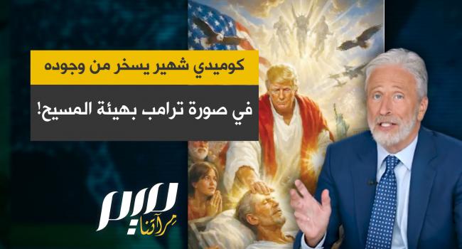 "يا إلهي.. هل أنا بخير؟ ما هذا بحق الجحيم؟!".. الإعلامي والكوميدي الأمريكي جون ستيوارت، يعبّر عن صدمته بطريقة ساخرة في برنامجه The Daily Show، بعد أن لاحظ وجوده في صورة دونالد ترامب المثيرة للجدل، والتي أظهر نفسه فيها على هيئة المسيح.