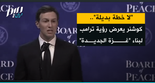 رجل الأعمال الأمريكي اليهودي ومستشار الرئيس ترامب، جاريد كوشنر، يطرح ملامح خطة شاملة لإحياء ما أسماها "غزة الجديدة"، تقوم على نزع سلاح حمـ ـاس، تغيير منظومة الحكم، وتحويل القطاع إلى منطقة استثمارية؛ خطة أثارت جدلا واسعا وقوبلت برفض من حمـ ـاس