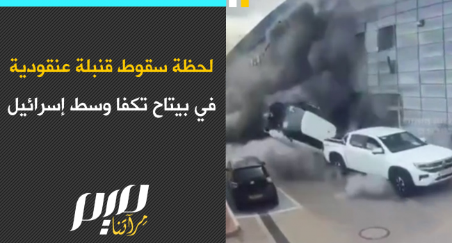 لحظة سقوط قنبلة عنقودية في بيتاح تكفا وسط كيان الاحتلال وثقها موقع أخبار إسرائيل العبري.