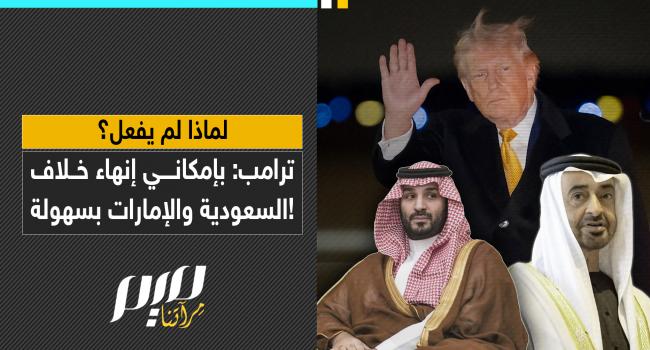 "أنا أحل الحروب والخلافات بين الدول".. ترامب يؤكد وجود خلافات بين السعودية والإمارات، زاعما قدرته على حلها بسهولة بالغة، ولكن دون أن يحرك ساكنا !