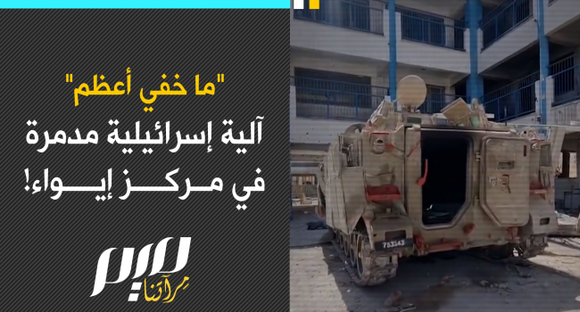 "ما خفي أعظم".. جيش الاحتـ ـلال الإسرائيلي يخلف آلية عسكرية مدمرة في مركز إيواء تابع للأونروا بالحي السعودي غرب محافظة رفح.