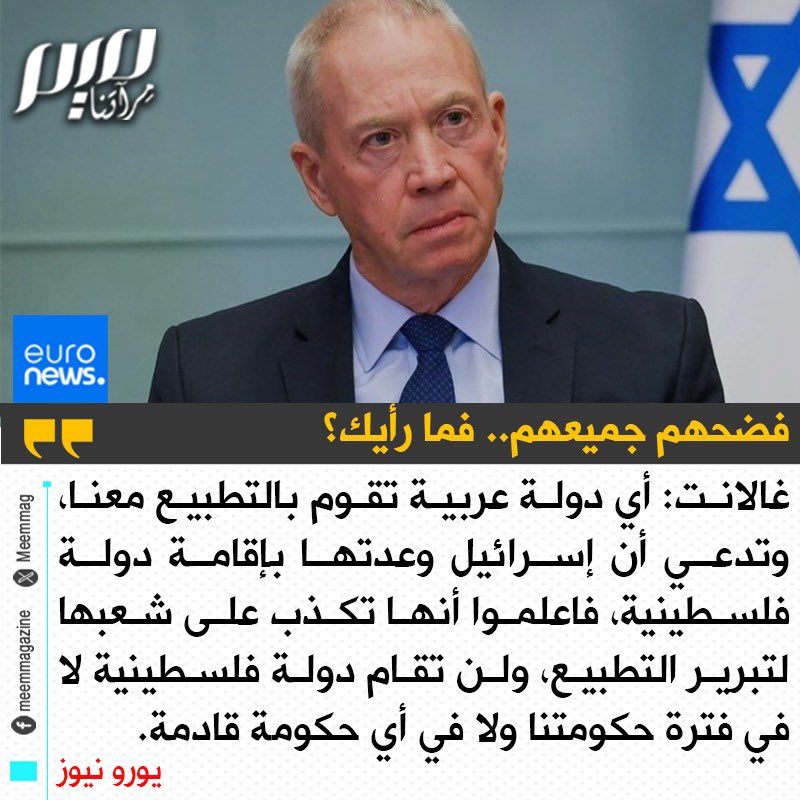 ما رأيك بفضيحة "ولاة الأمر" المطبعين والمتجهين للتطبيع على لسان وزير دفاع الاحتلال يوآف غالانت في اجتماع لحزب الليكود أمس، كما نقلت قناة "يورو نيوز" الأوروبية في تقرير لها؟