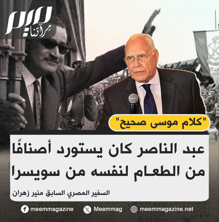 "ما قاله صحيح".. بعد سنوات على تصريحات الدبلوماسي عمرو موسى المثيرة للجدل، السفير المصري السابق منير زهران يؤكد كلامه بشأن استيراد جمال عبد الناصر أنواعًا معينة من الطعام من سويسرا. وقال زهران في لقاء على "العربية" إن رواية موسى صادقة 100%، وإنه لا يخشى الانتقاد، موضحًا أن شخصًا مقربًا من عبد الناصر، يدعى فتحي الديب، كان يجلب له أصنافًا من الطعام من بيرن.