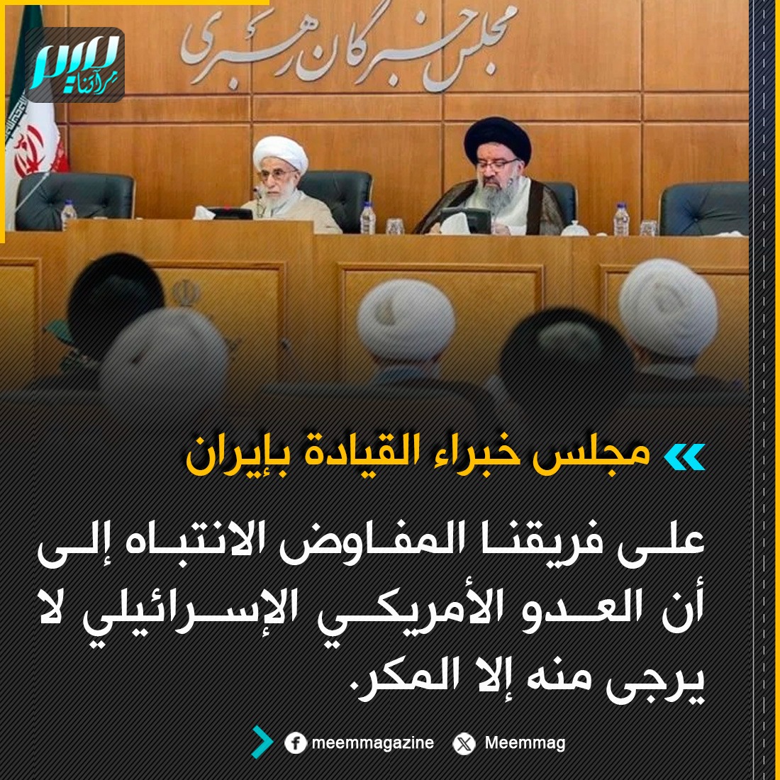 مجلس خبراء القيادة بإيران: على فريقنا المفاوض الانتباه إلى أن العدو الأمريكي الإسرائيلي