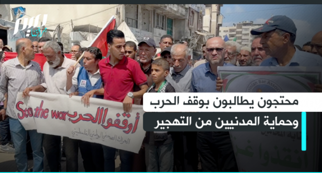 محتجون يطالبون بوقف الحرب وحماية المدنيين من التهجير