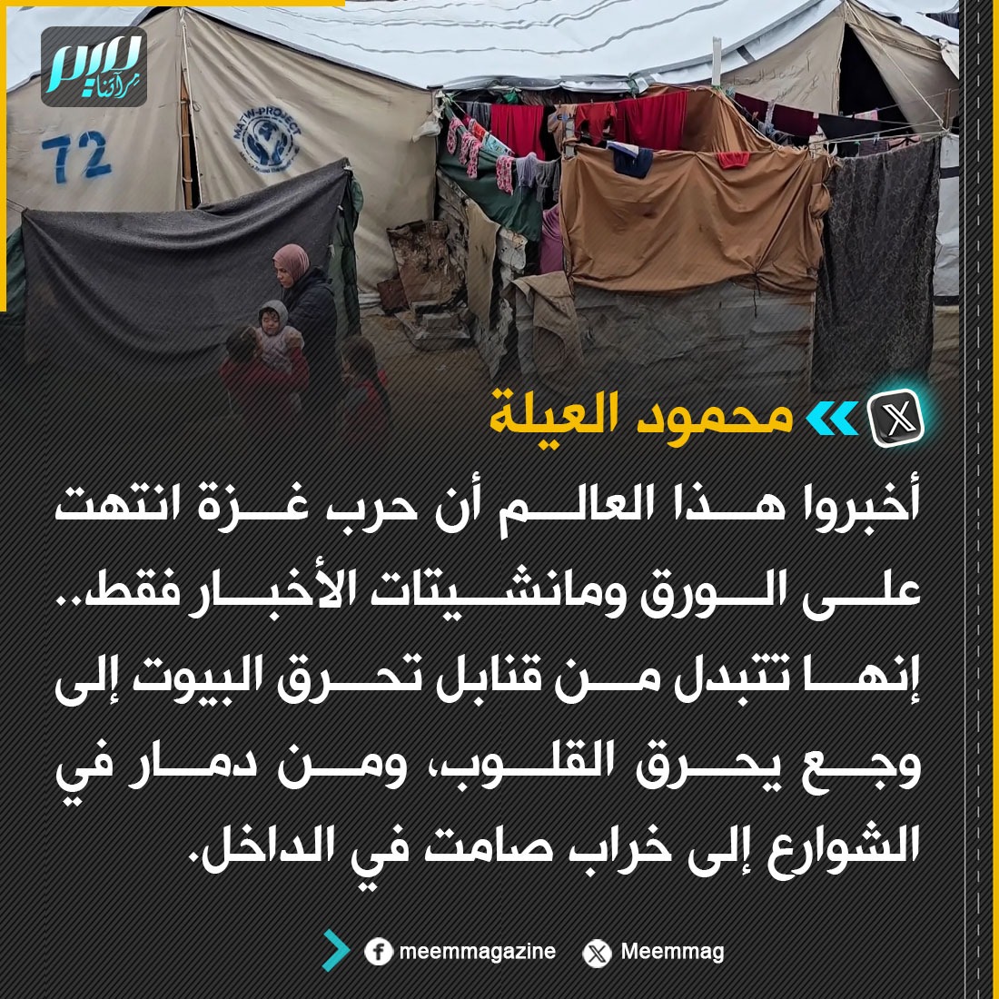 محمود العيلة: أخبروا هذا العالم أن حرب غزة انتهت على الورق ومانشيتات الأخبار فقط!