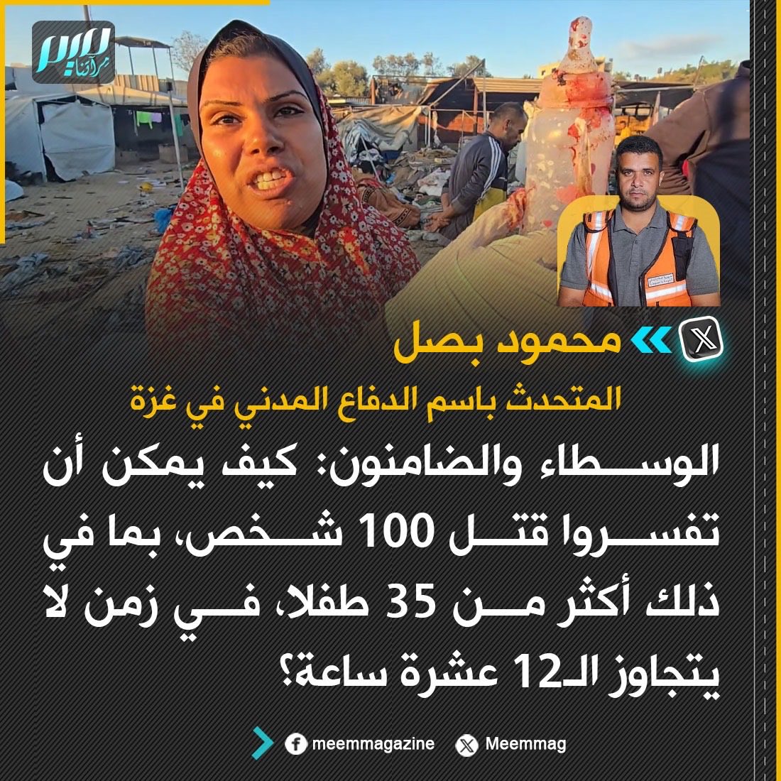 محمود بصل: الوسطاء والضامنون: كيف يمكن أن تفسروا قتل 100 شخص، بما في ذلك أكثر من 35 طفلا، في زمن لا يتجاوز الـ12 عشرة ساعة؟