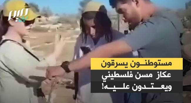 مقطع فيديو يوثق لحظة قيام مجموعة من المستوطنين المدججين بالسلاح بالاعتداء على المسنّ الفلسطيني سعيد العمور وسرقة عكازه بينما كان يحاول الدفاع عن أرضه، علما أنه فقد ساقه قبل أشهر إثر إصابته برصاص مستوطن.