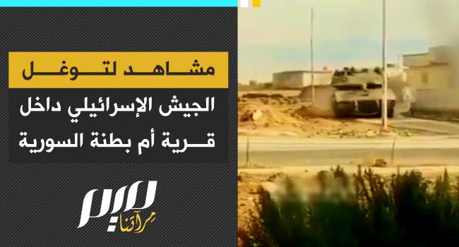 مشاهد مصورة توثق توغل آليات الجيش الإسرائيلي داخل قرية أم بطنة بمحافظة القنيطرة السورية، مع إجبار سكان قريتي الحضر والحميدية على النزوح القسري من منازلهم.