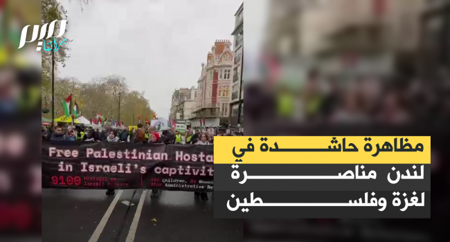مظاهرة حاشدة في لندن مناصرة لغزة وفلسطين، ومناهضة للاختراقات الإسرائيلية المتكررة لاتفاق وقف إطلاق النار.