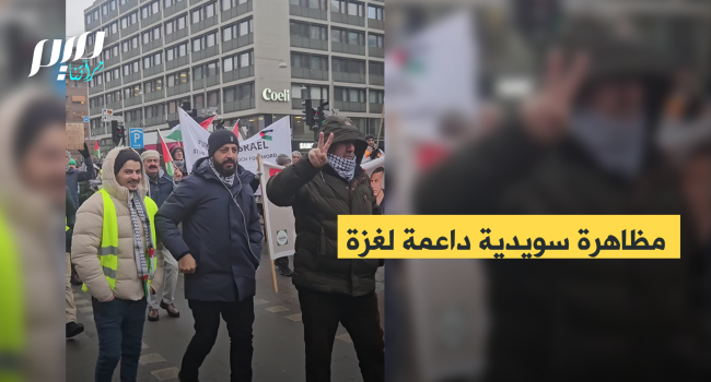 ناشطون سويديون يتظاهرون في شوارع العاصمة ستوكهولم دعما لغزة وضد الإبادة الجماعية الإسرائيلية.