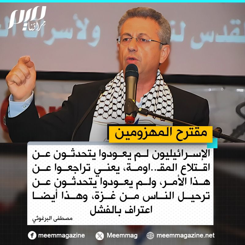 "اعتراف بالفشل".. أمين عام المبادرة الوطنية الفلسطينية مصطفى البرغوثي يؤكد أن المقترح الإسرائيلي الجديد إقرار واضح بالهزيمة، والإخفاق في تحقيق الأهداف المعلنة للعدوان على غزة.