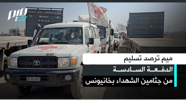 "ميم" تتابع نقل سيارات الصليب الأحمر الدولي لدفعة جديدة من جثامين الشهداء الفلسطينيين، عبر معبر كوسوفيم إلى مستشفى ناصر بخانيونس.