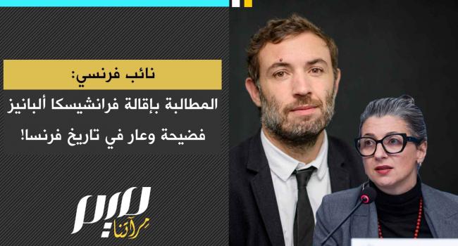 "المطالبة بإقالة فرانشيسكا ألبانيز فضيحة وعار في تاريخ فرنسا! النائب الفرنسي توماس بورت يندد بدعوة وزير خارجية بلاده لتنحية المقررة الخاصة للأمم المتحدة للأراضي الفلسطينية المحتلة من منصبها، مؤكدًا أن هذه الخطوة تجعل فرنسا اليوم في الصف الأمامي لترويج الدعاية الإسرائيلية."