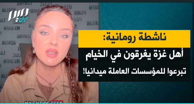 الناشطة الرومانية، نيكول جينيس: "بالإضافة إلى الإبادة الجماعية والظلم والمجازر والدماء، نرى الفلسطينيين الآن في الخيام وقد غمرتهم المياه، الوضع كارثي. حتى لو كانت المستلزمات في غزة أغلى مما لو أرسلناها، تبرّعوا للمؤسسات الميدانية. فهذه حالة طارئة ووصول المساعدات من الخارج يمر بتعقيدات كثيرة."