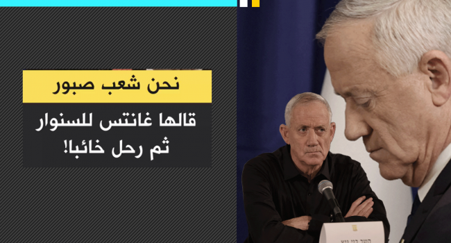 "نحن شعب صبور"..عبارة باللغة العربية وجهها الوزير في حكومة الحرب بيني غانتس، إلى يحـ.ـيى السـ..ـنوار في بداية الحرب.. لكن بعد 8 أشهر، من منهما صبر؟