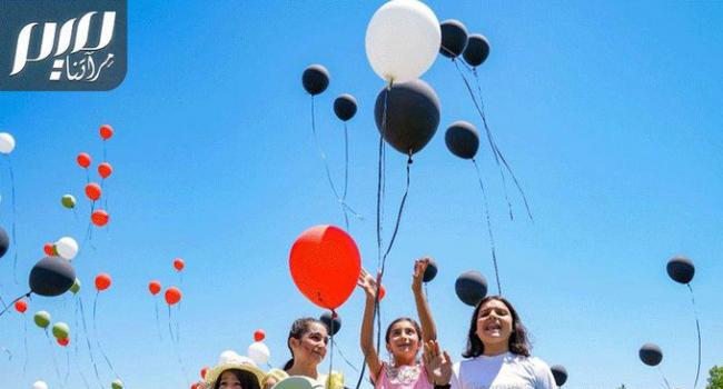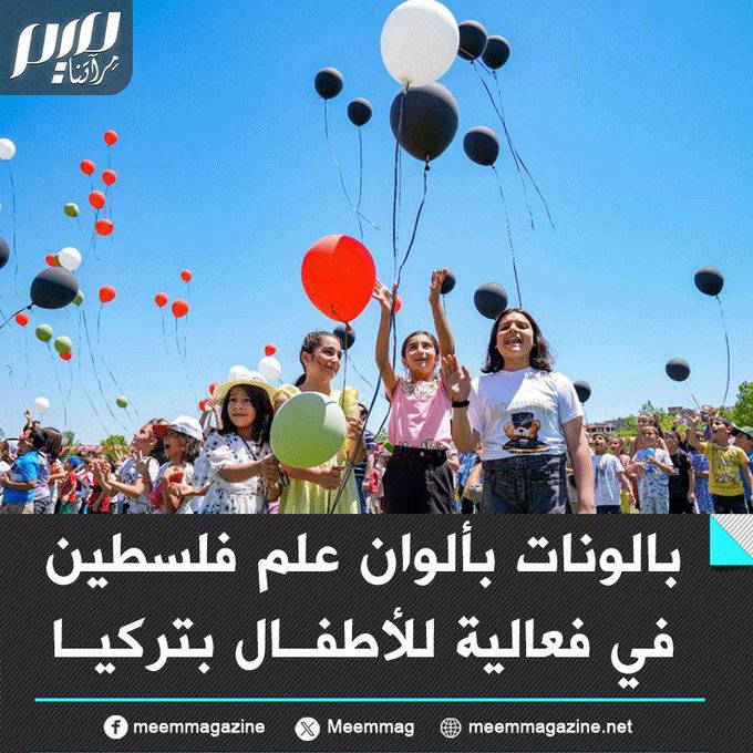 أطفال ولاية ديار بكر التركية يطلقون بالونات بألوان علم فلسطين، في نشاط تضامني مع أطفال غزة.