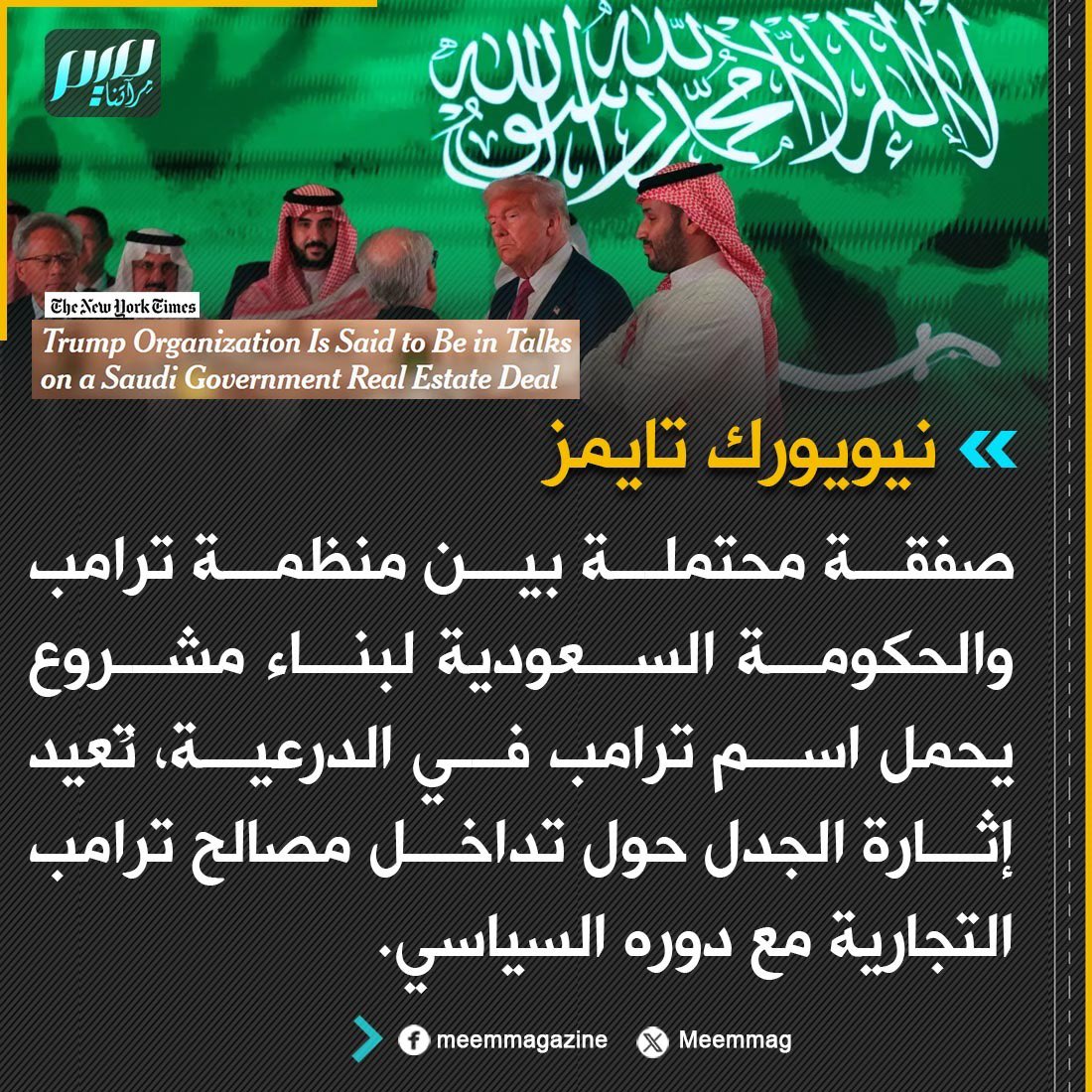 نيويورك تايمز: صفقة محتملة بين منظمة ترامب والحكومة السعودية لبناء مشروع يحمل اسم ترامب في الدرعية، تُعيد إثارة الجدل حول تداخل مصالح ترامب التجارية مع دوره السياسي.