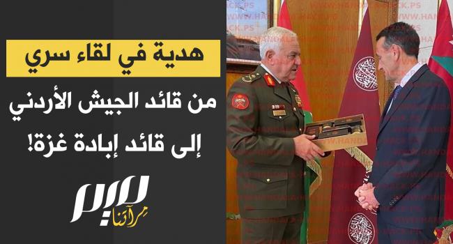 من داخل مكتب رئيس الأركان الأردني.. مقاطع حصرية صوتا وصورة تكشف تبادل الهدايا بين رئيس أركان الجيش الأردني، يوسف أحمد الحنيطي، ورئيس أركان جيش الاحتلال السابق، هرتسي هاليفي، الذي قاد حرب الإبادة على غزة! المقاطع سريتها مجموعة هاكرز اخترقت هاتف هاليفي. شاهد!