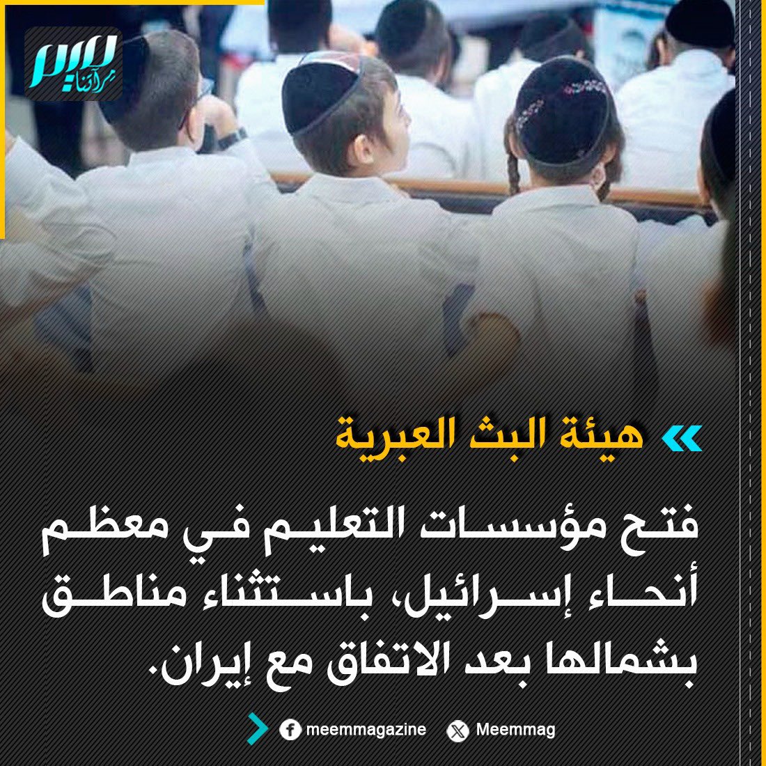 هيئة البث العبرية: فتح مؤسسات التعليم في معظم أنحاء إسرائيل، باستثناء مناطق بشمالها بعد الاتفاق مع إيران