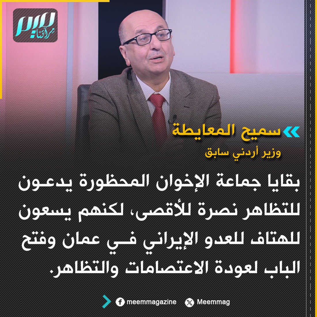 وزير أردني سابق مضللا الرأي العام: بقايا جماعة الإخوان المحظورة يدعون للتظاهر نصرة للأقصى، لكنهم يسعون للهتاف للعدو الإيراني في عمان وفتح الباب لعودة الاعتصامات والتظاهر.