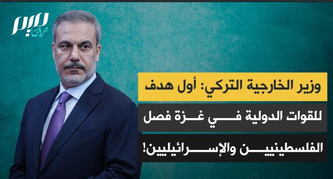 وزير الخارجية التركي هاكان فيدان حول نشر قوات دولية في غزة: "أعتقد أن هدفنا الأول من نشر قوة الاستقرار الدولية هو الفصل بين الفلسطينيين والإسرائيليين على الخط الحدودي -الخط الأصفر- يجب أن يكون هذا هدفنا الرئيسي، ثم يمكننا بعد ذلك معالجة العقبات."