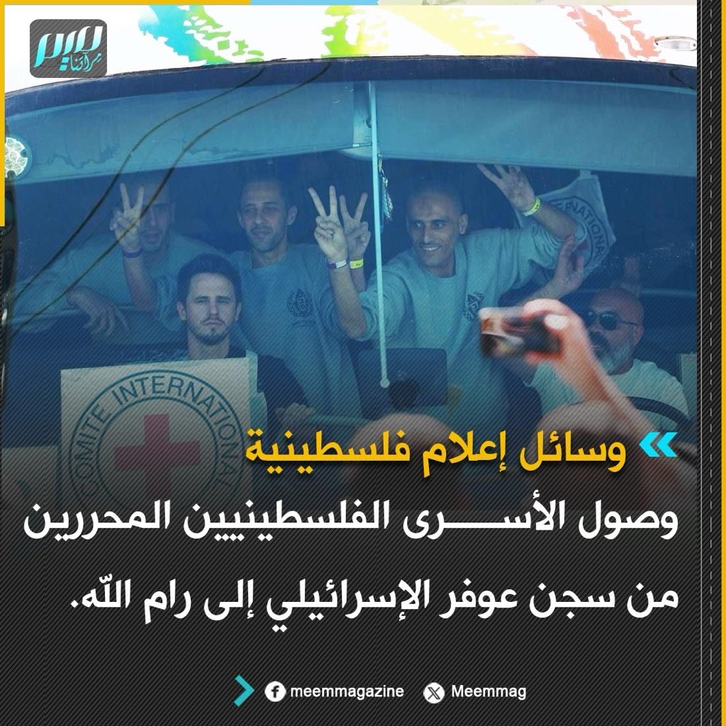 وسائل إعلام فلسطينية: وصول الأسرى الفلسطينيين المحررين من سجن عوفر الإسرائيلي إلى رام الله.