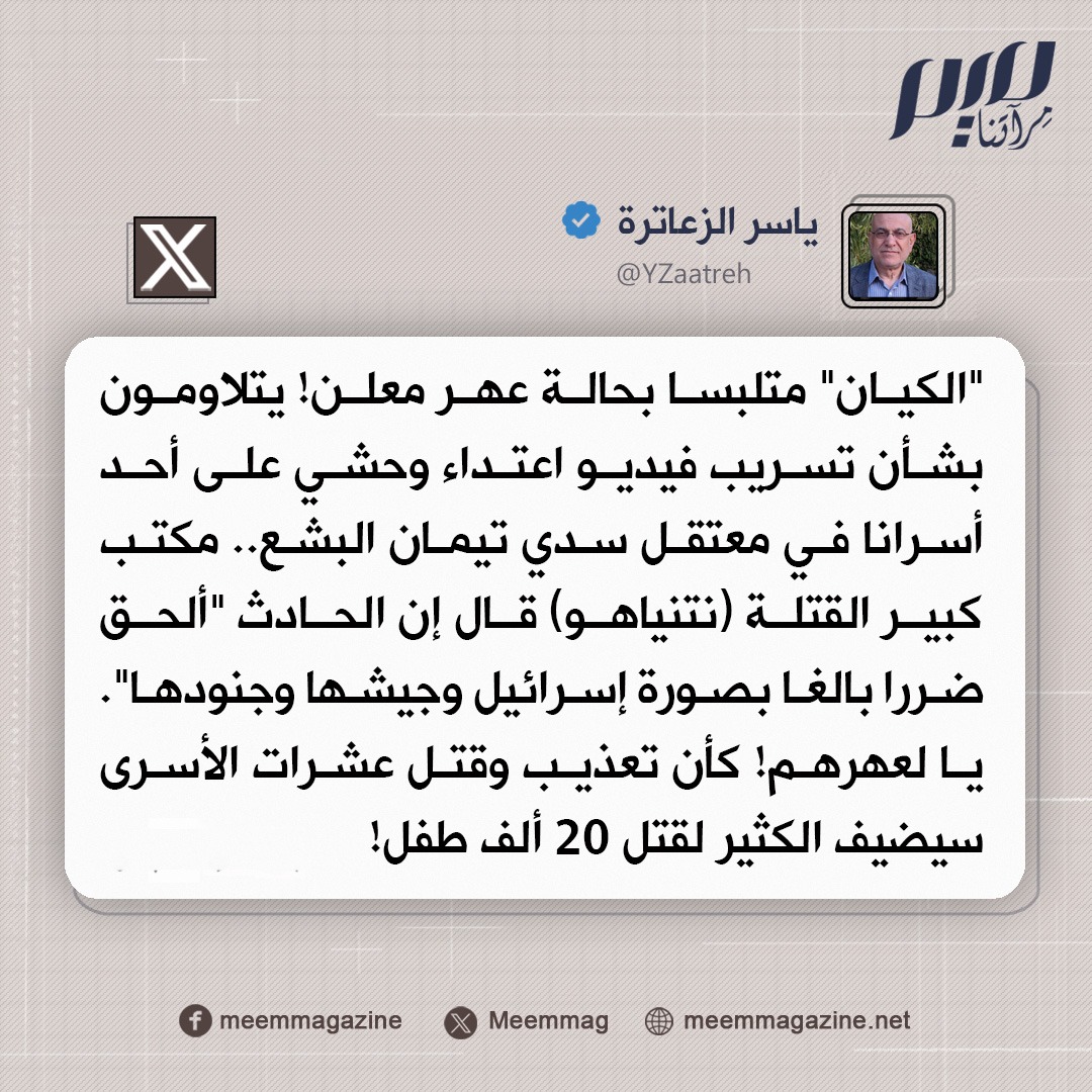 ياسر الزعاترة: يا لعهرهم! كأن تعـ.ـذيب وقتـ.ـل عشرات الأسرى الفلسطينيين سيضيف الكثير لقتـ.ـل 20 ألف طفل!
