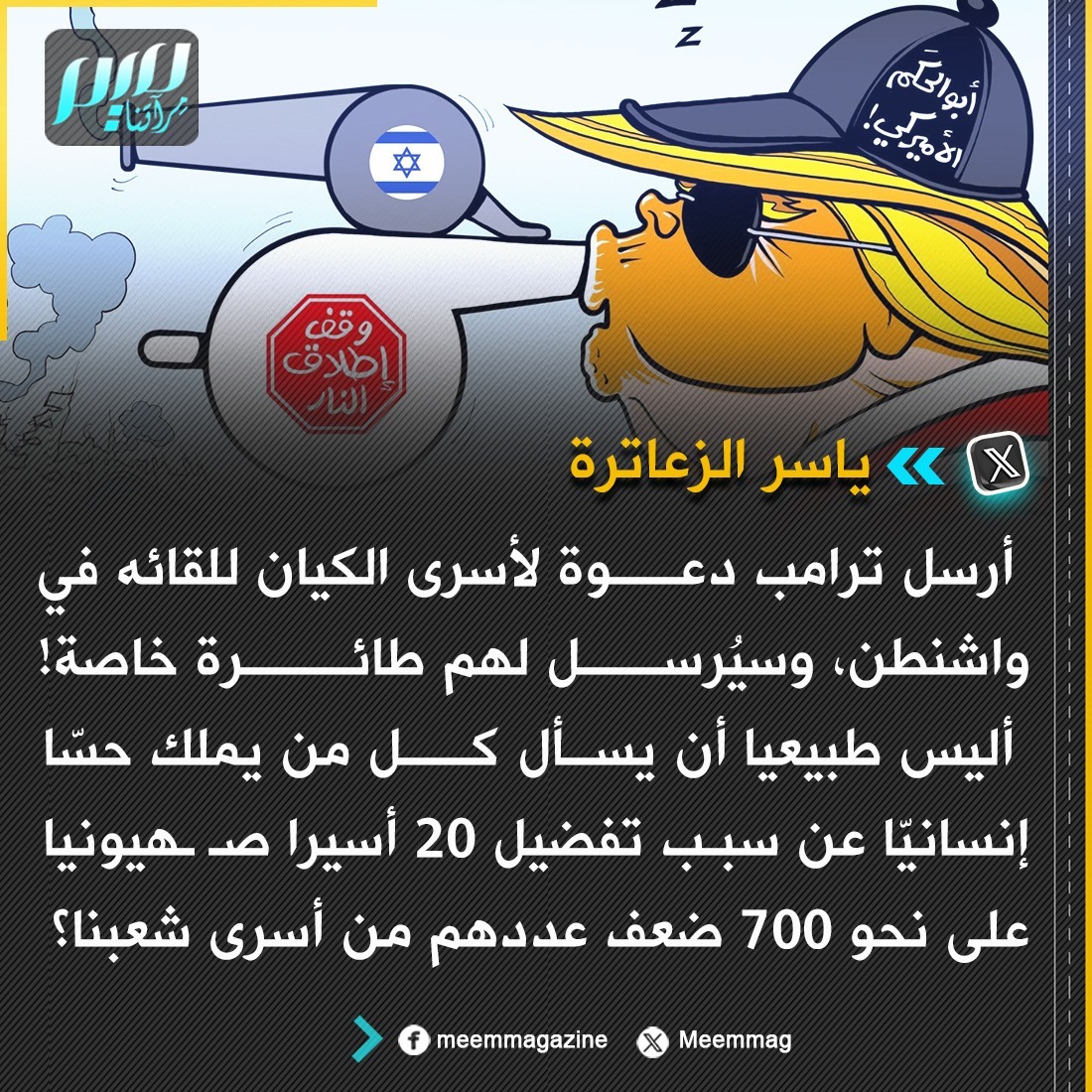 ياسر زعاترة: أليس طبيعيا أن يسأل كل من يملك حسا إنسانيا عن سبب تفضيل 20 أسيرا صهيونيا على نحو 700 ضعف عددهم من أسرى شعبنا؟