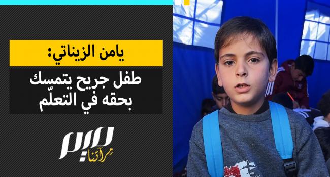 "أريد أن أتعلم كي أصبح أستاذًا مثل والدتي"… يامن الزيناتي، طفل غزي يبلغ من العمر 10 أعوام، يتحدى الإصابة وتهديدات الاحتلال، ويتنقل يوميًا إلى مدرسته القريبة من المنطقة الخطرة شمال قطاع غزة، طلبًا للعلم. "ميم" نقلت لكم قصته المؤثرة.